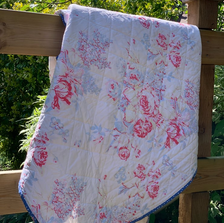 A beautiful selection of floral fabrics in pinks, blues, greens and white.