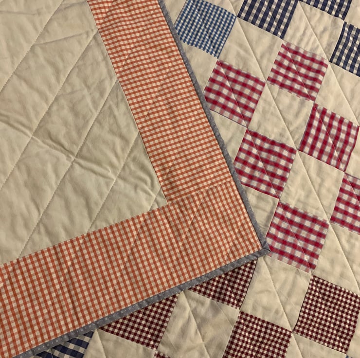 Stunning handmade quilt in a checker board design in gingham cotton fabric. Smart clean lines, at home on the bed or sofa.