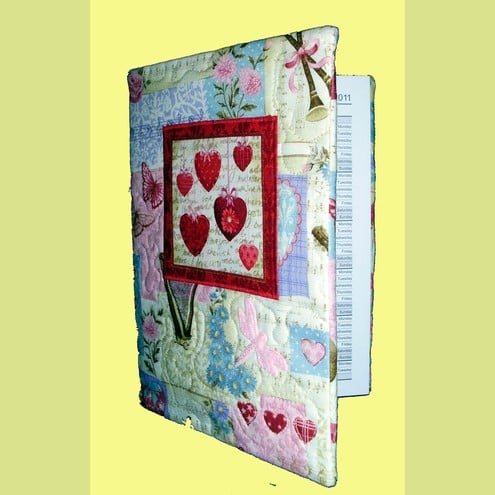 A5 diary cover. The cover has a machine appliquéd panel and dragonfly. Complete with standard day to page diary, refills are easily available, for next year.