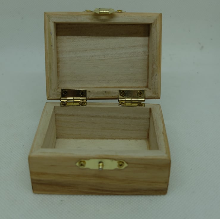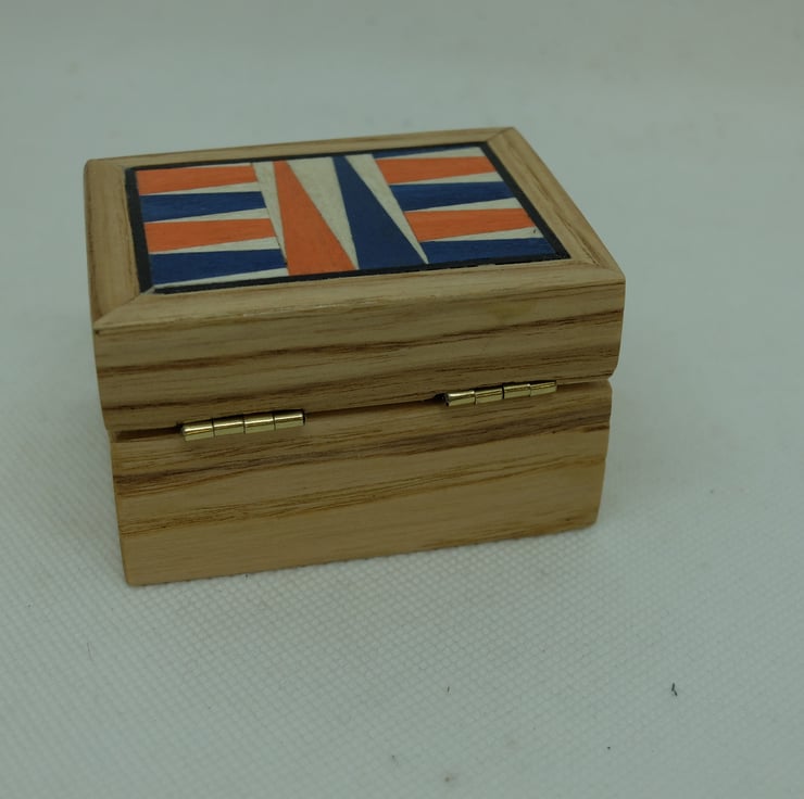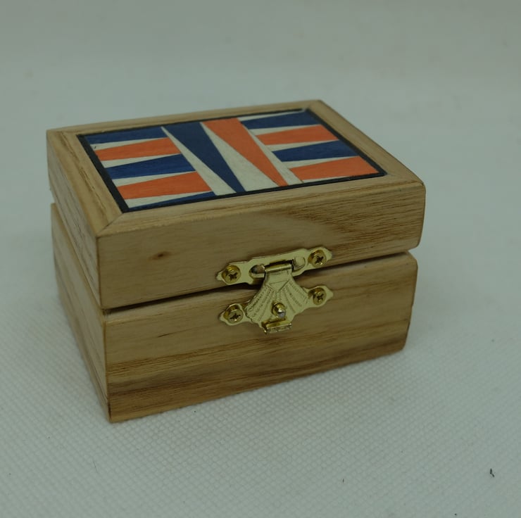 This is a small rectangular box with a hinged lid and clasp which I have veneered in a pale wood veneer and inset a backgammon-style design to the lid.