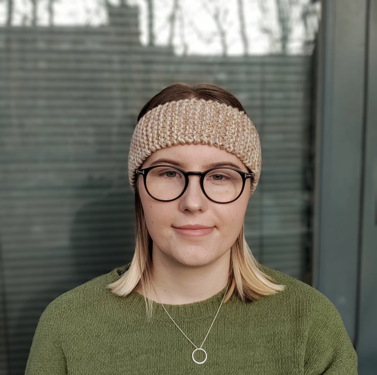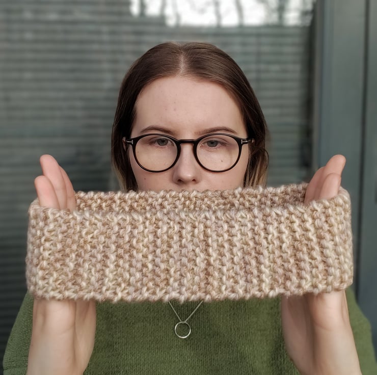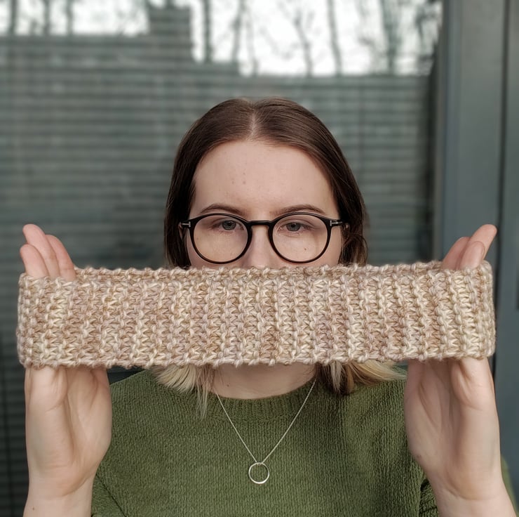 All of the materials I use are from up-cycled/recycled origins. The yarns used in this headband are either from local donation or thrifted from charity shops. I combine three different yarns together to make a super cozy one of a kind piece.