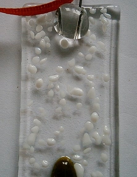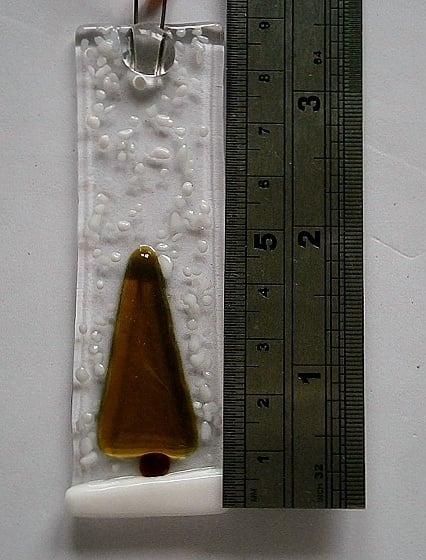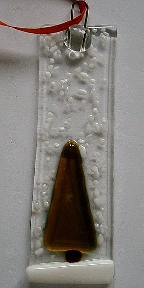 Hand made snowy tree Christmas decorations made by fusing glass.