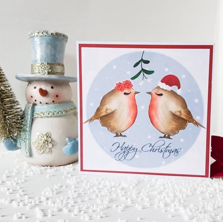 This beautiful Robin kissing under the mistletoe card is perfect for the one you love this Christmas.