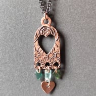 Forged by fire and water - the metal to make the clays comes from recycled electrical items and when fired in a kiln becomes solid metal. The sea glass is collected from West Country beaches and carefully selected for each item, no two pieces are exactly alike!