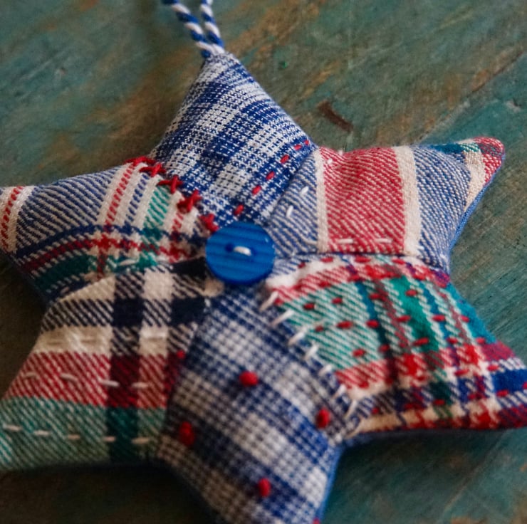 Vintage Fabric Star Ornament Christmas Patchwork Stuffed Ornament