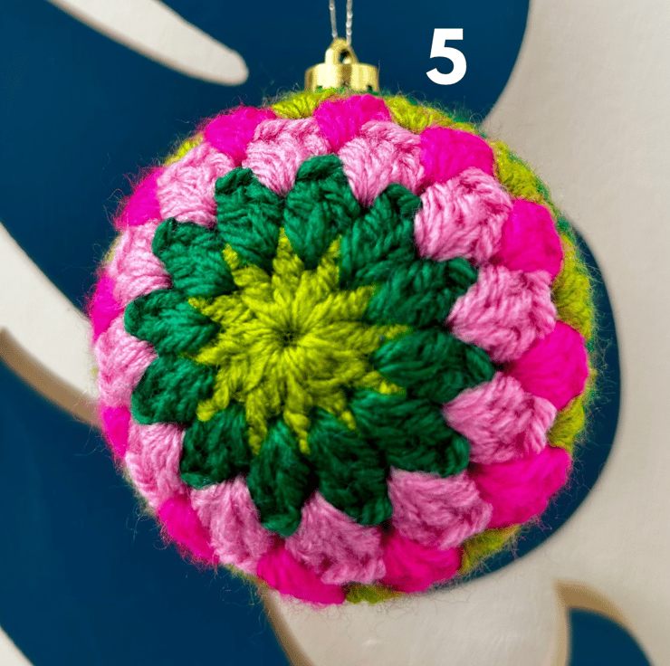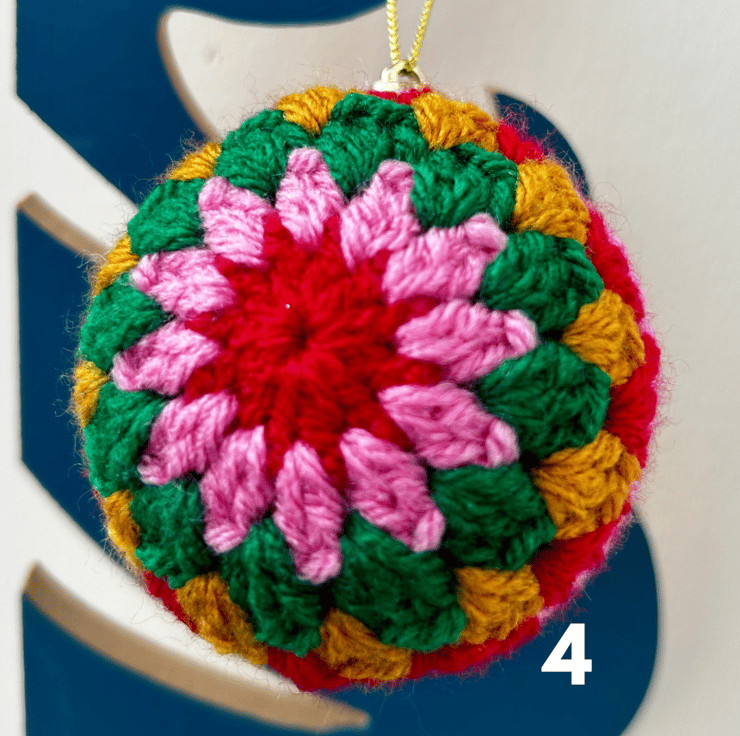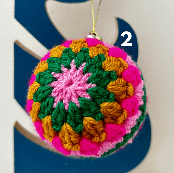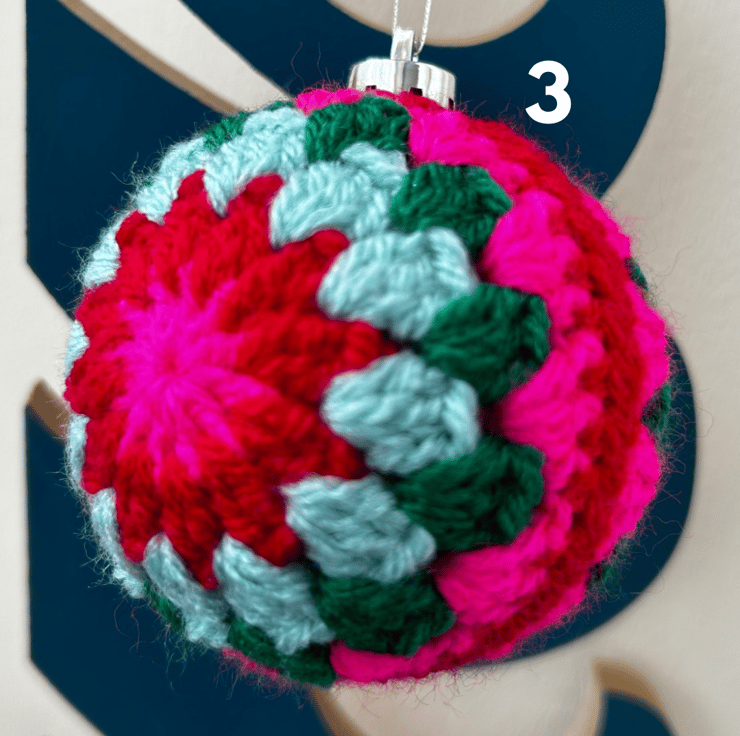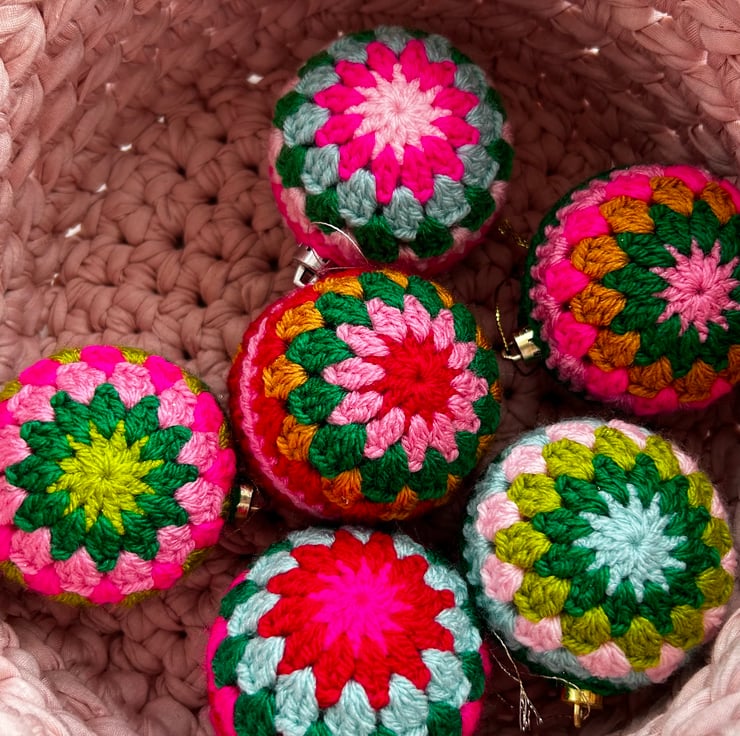 Brighten up your home this Christmas with a set of three cheerful and bright crochet baubles!