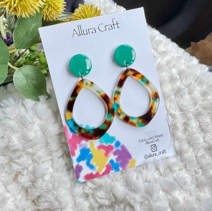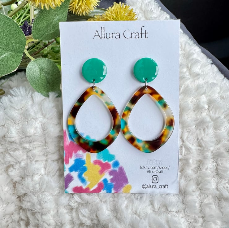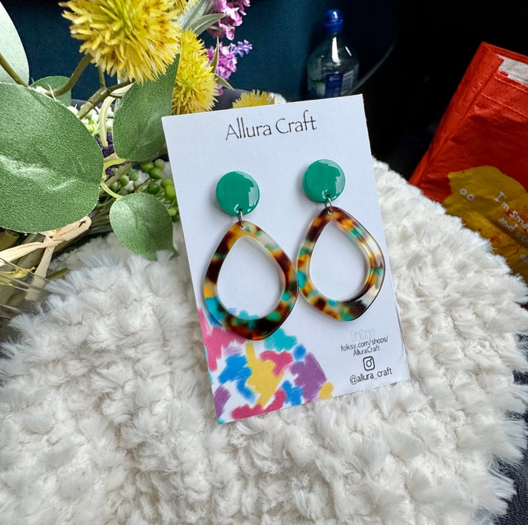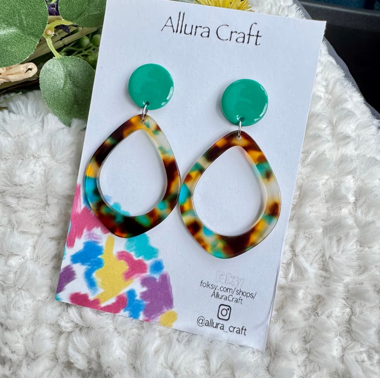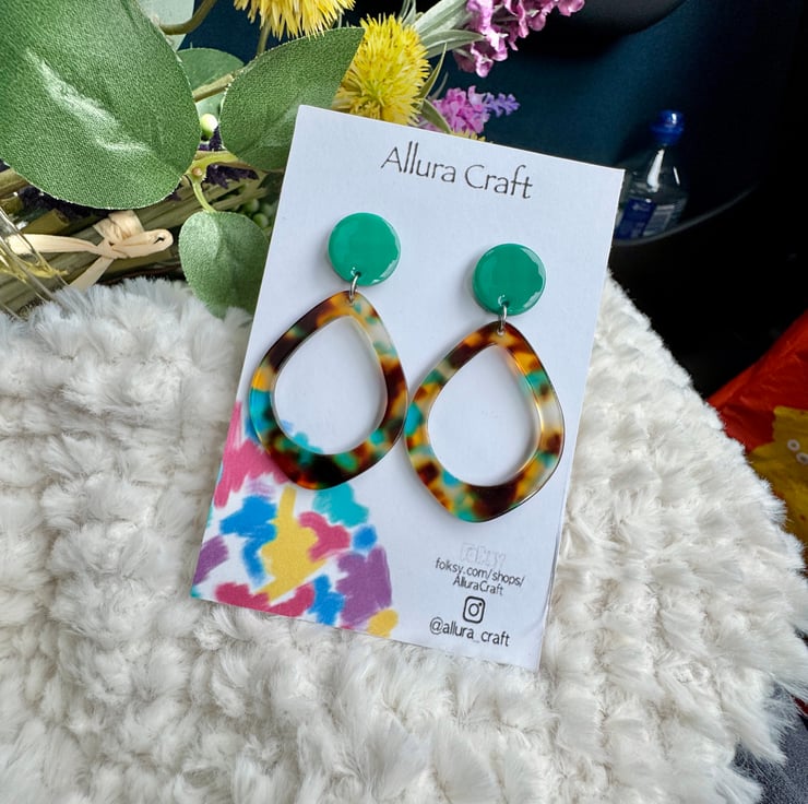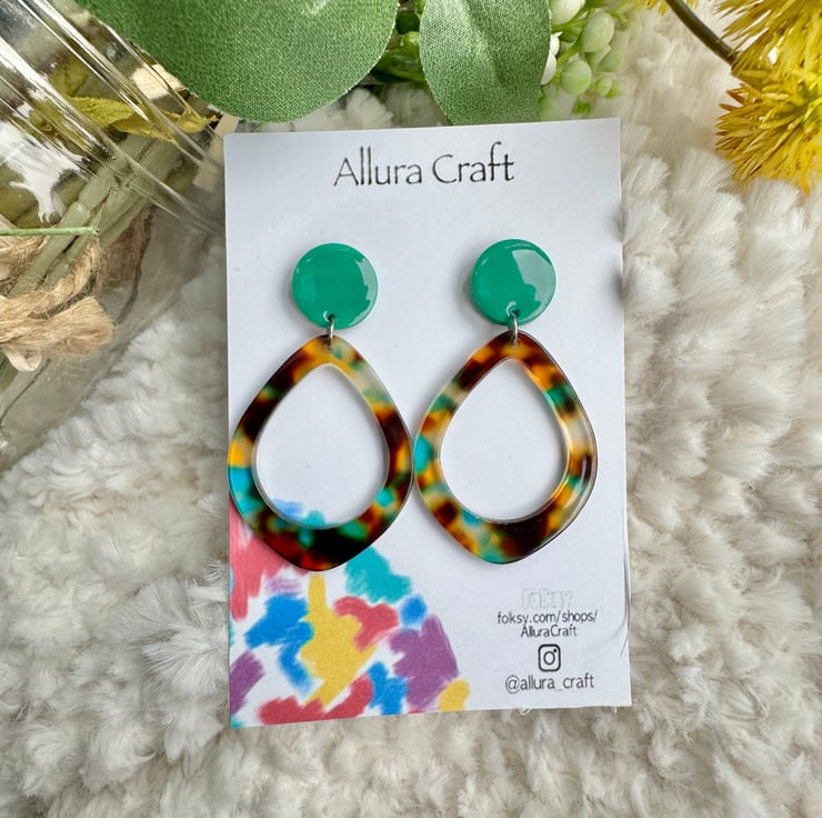 Adjoining to an acrylic tortoise shell brown hues with flecks of green blue hints