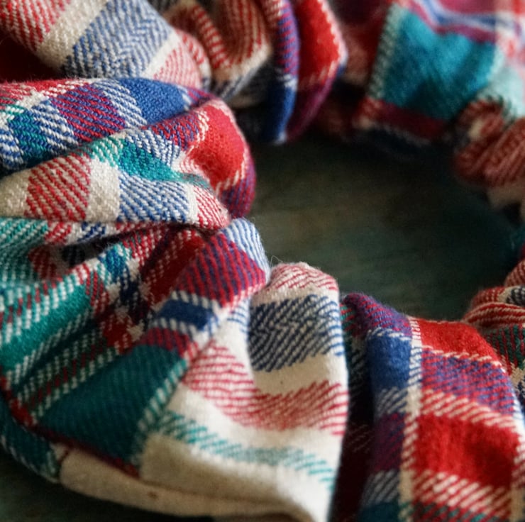 Elevate your everyday look with this charming scrunchie, handmade using scraps of vintage fabric. This piece carries the story of naturally dyed, handwoven textiles, showcasing their timeless beauty and unique imperfections.