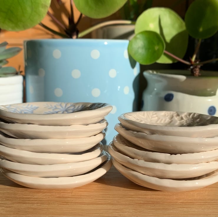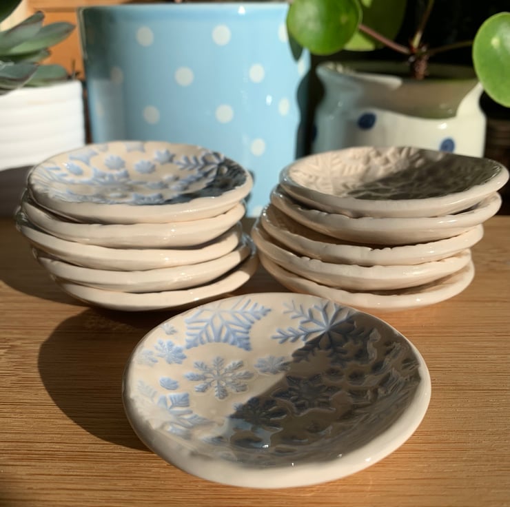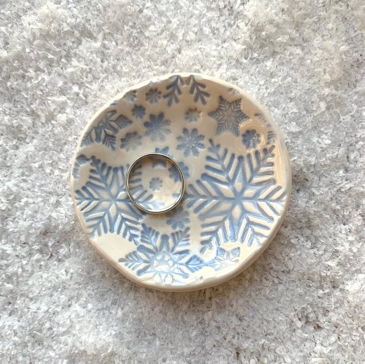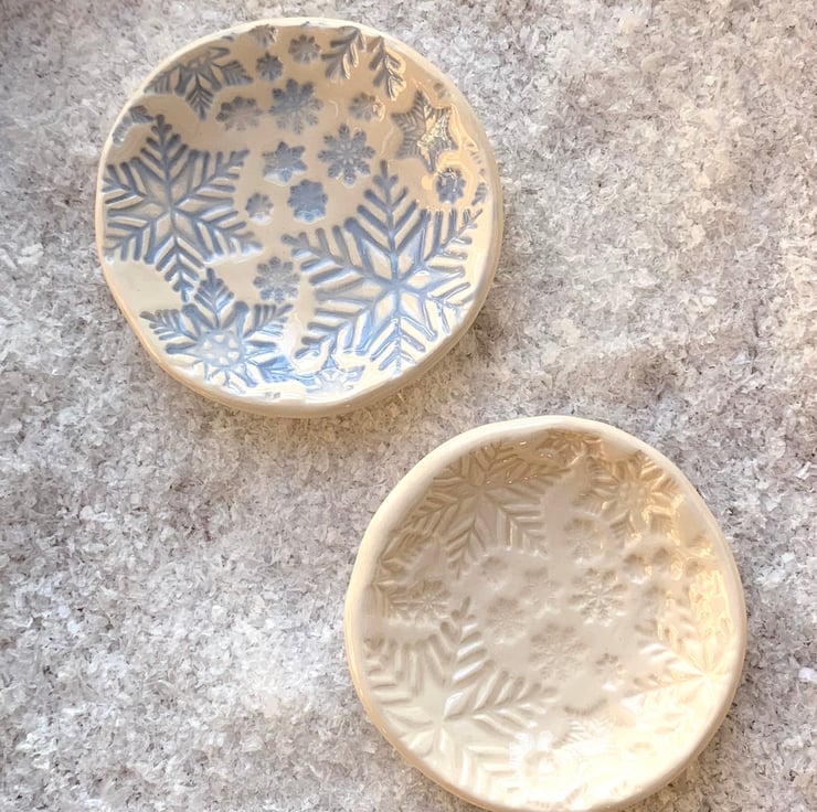 Handmade Little Snowflake Dish. This is for 1 little Pale Blue Snowflake dish. I also have a seperate listing for an all white snowflake dish.