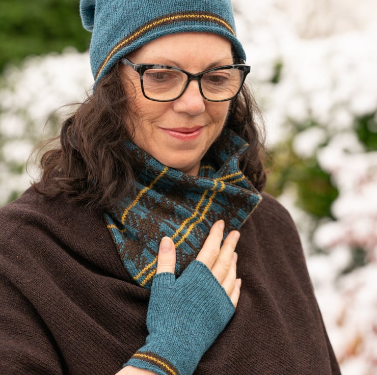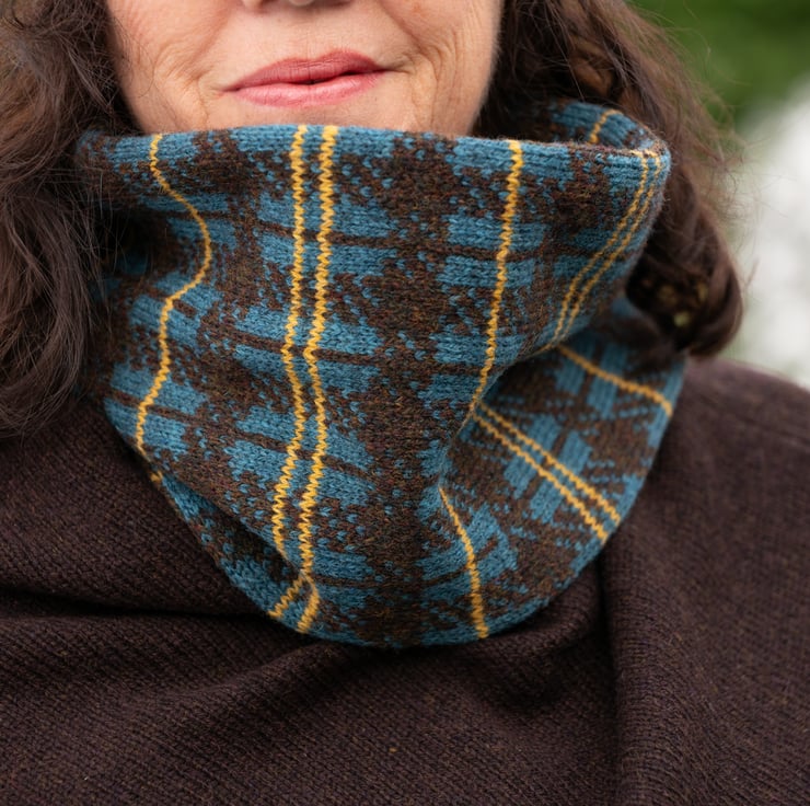 Experience warmth and elegance with theis Women's Plaid Cowl, a tribute to traditional Scottish Tartan. Crafted from super soft lambswool spun in Scotland, this teal, mustard, and tweed brown snood offers both style and comfort. The doubled-over design ensures a cosy fit, making it a perfect accessory for chilly winters. Additionally, its natural moisture-wicking properties keep you dry and comfortable.