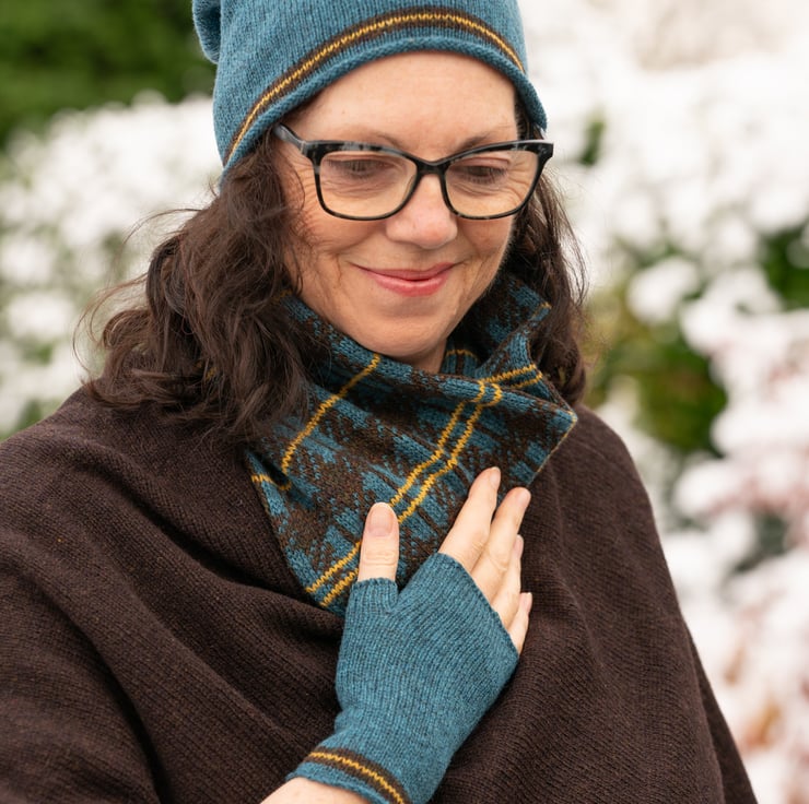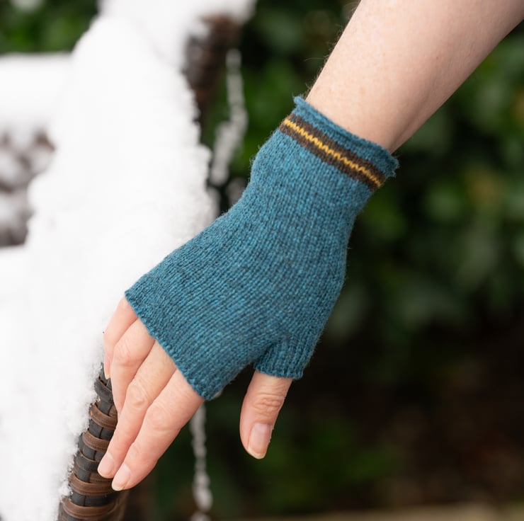 Teal fingerless mitts. Part of my Heritage Collection these texting gloves are knitted with a super soft lambswool spun in Scotland.