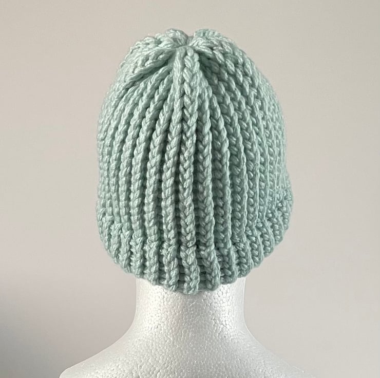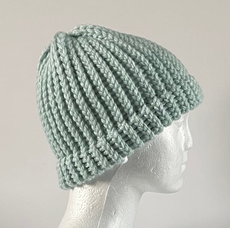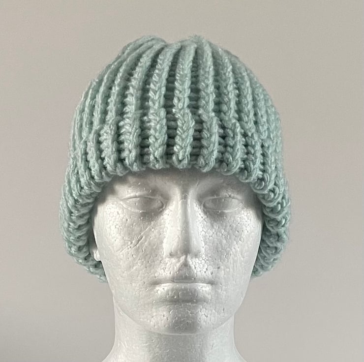 This Beanie is loom knitted with a fixed brim so makes it easy to slip on and off your head without the need to reposition every time.