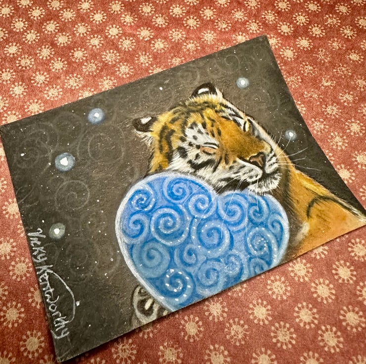 So what is an ACEO I here you cry, well they are pieces that measure 2.5 inches by 3.5 inches. The size of most football and other collectable card.