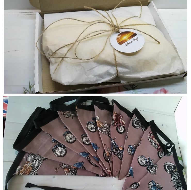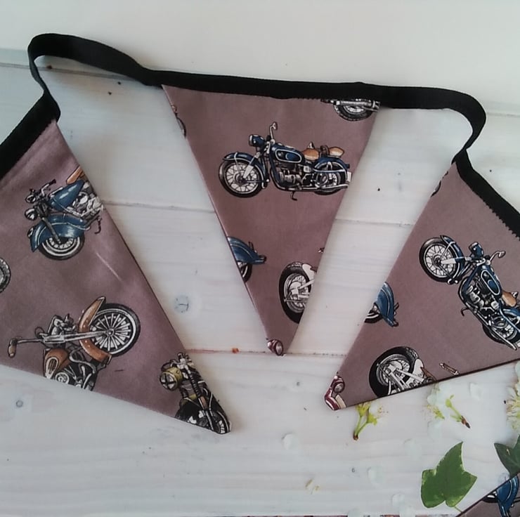motorcycle biker bunting - cotton fabric.