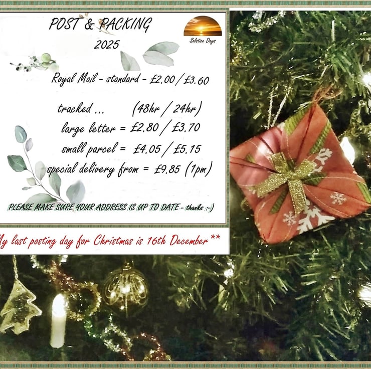 Please note items are posted using Royal Mail and it is now coming up to the busiest time of the year so tracked postage is available as an upgrade from 1st November to 16th December