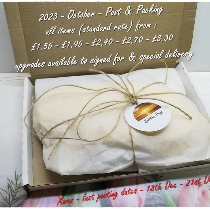 Please note items are posted using Royal Mail and it is now coming up to the busiest time of the year so tracked postage is available as an upgrade at checkout from 1st November to 16th December