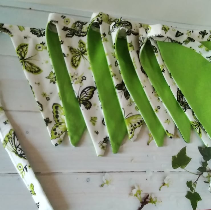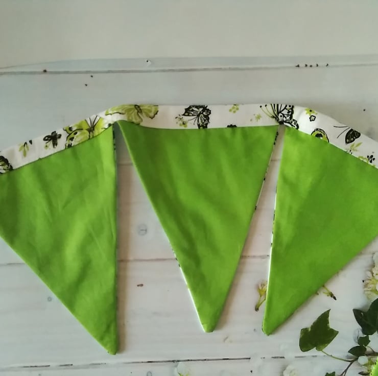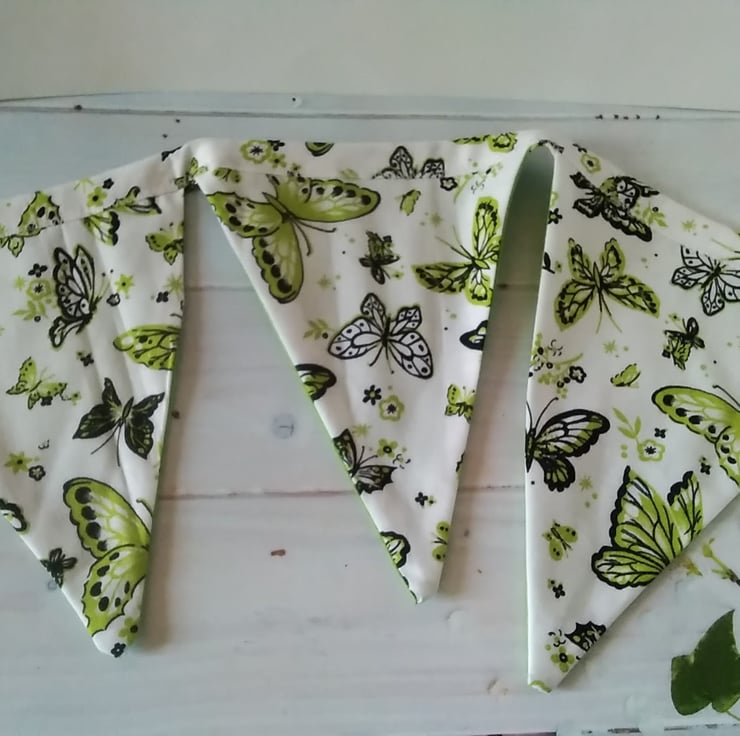 Green butterfly full size cotton bunting, handmade in Yorkshire and ready to post