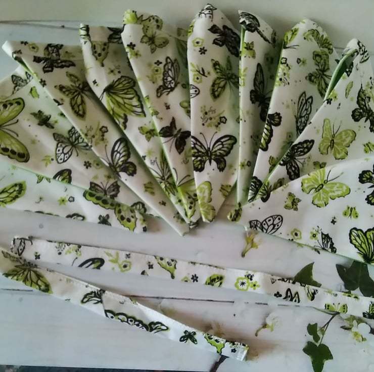 Green butterfly cotton bunting, Full size reusable with 10 flags double sided
