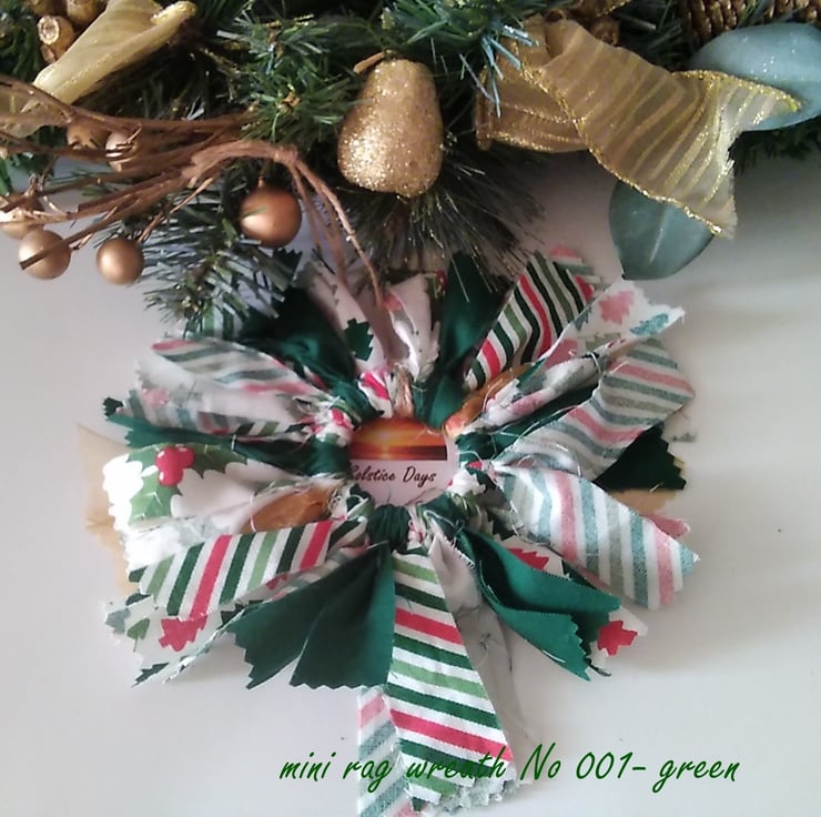 DETAILS : mini rag wreath made using fabric scraps and ribbons