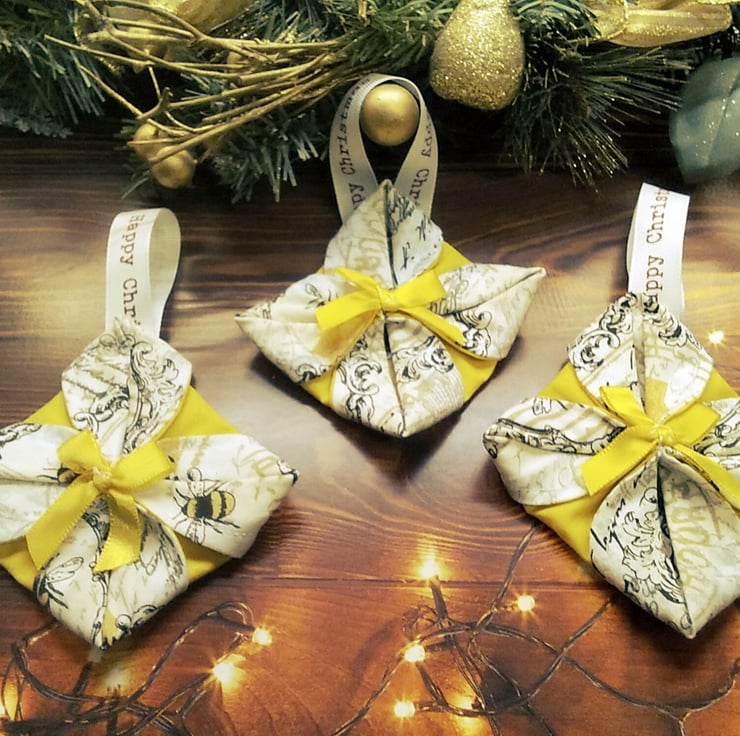 christmas tree decoration - felt xmas decoration - mini rag wreath - christmas decor - christmas star - folded fabric decoration - handmade tree ornament - handmade decoration - christmas tree ornament - red felt tree decoration - green felt tree ornament - gold mini rag wreath - rag wreath - handmade in Yorkshire - cat tree decoration - bees xmas decoration - motorbike folded decoration - biker tree ornament - stocking filler gift - secret santa