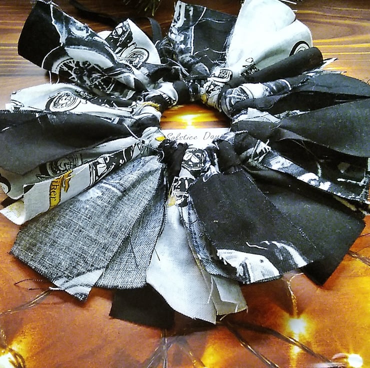 Motorbike mini rag wreath, eco friendly motorcycle home decor hanging decoration