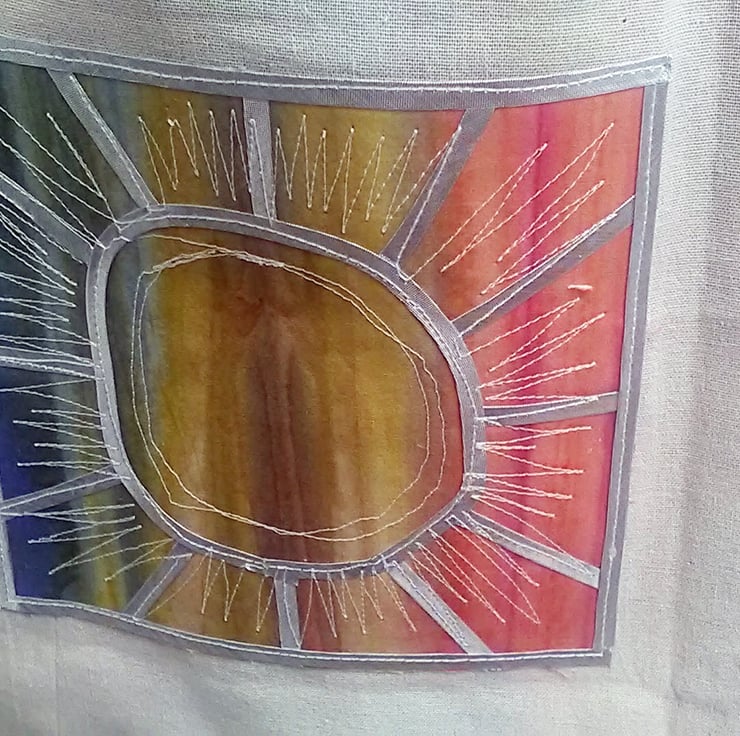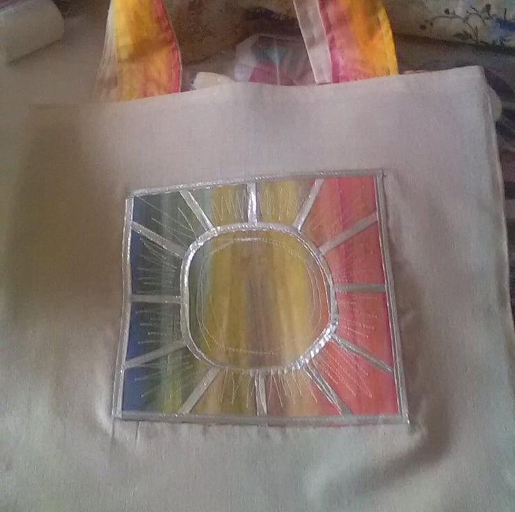 Bag - Solstice Sun Applique (c) J. Penney (2021) inspired by the Sunburst Design (c) my late Father, J. W. Sykes (as shown in the photos dated 2003)