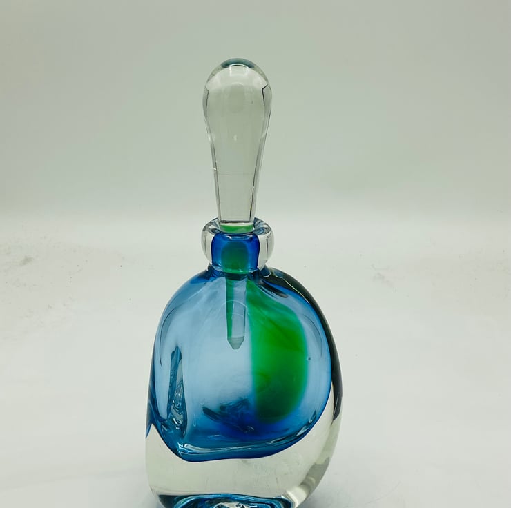 2 Tone Bottle in Blue and Green measuring 18cms high with stopper