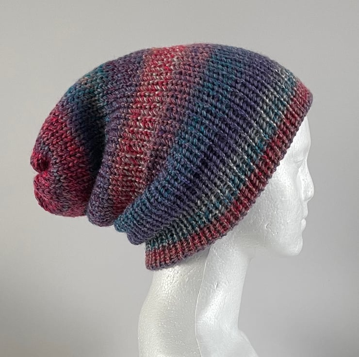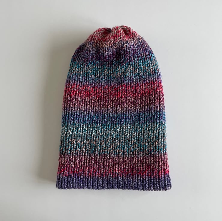Stay warm and stylish this winter with this beanie. Handmade with love, this double-layered knitted hat is perfect for adding a touch of casual chic to a winter wardrobe. The lightweight design makes it comfortable to wear all day long, while the acrylic material keeps you warm and cosy. The beanie features an ombre pattern, making it easy to pair with any outfit. Whether you're running errands or heading out with friends, this hat is sure to turn heads.