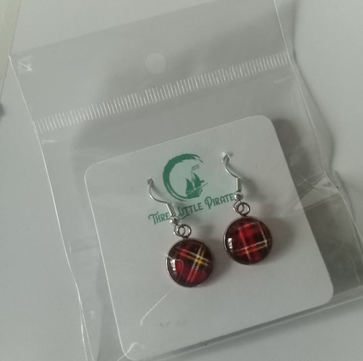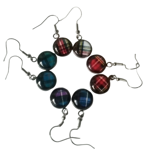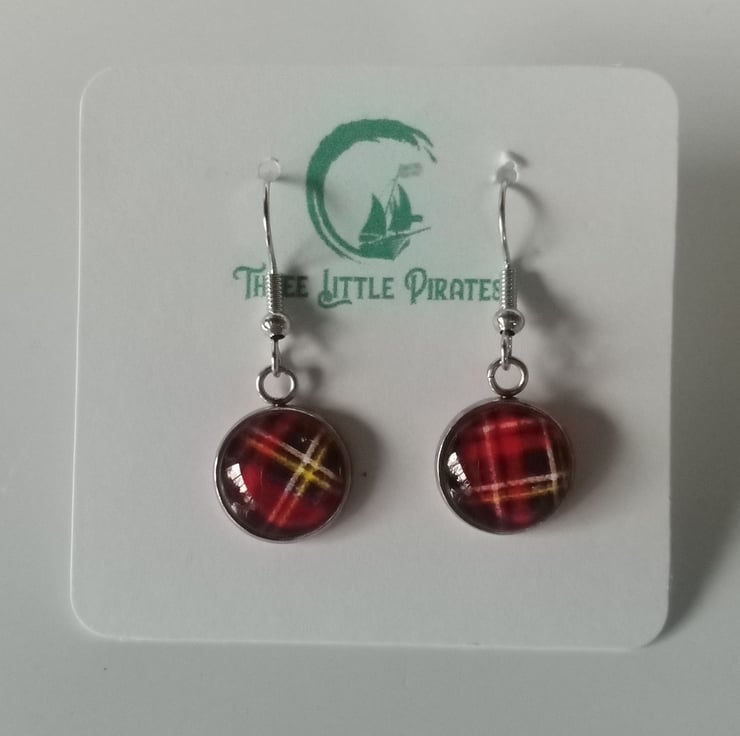 Stainless Steel fishhook earrings with a 12mm glass cabochon in your choice of tartan. These are lightweight and easy to wear.