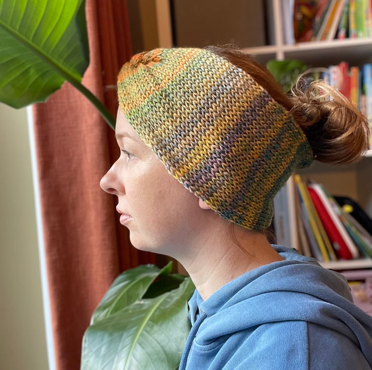 I wear my hair up quite often, which means I can't wear a full hat on those days, so I wanted to make something that would still keep my ears and forehead warm. I've made narrow and wide versions, as well as hats with a ponytail hole in the top.