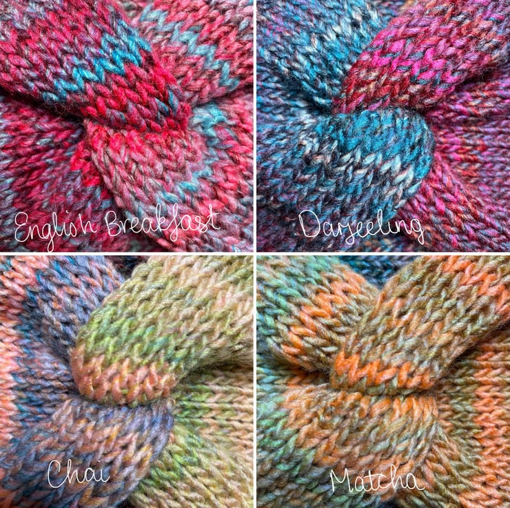 I make all my knitwear in my studio in Hertfordshire. They are made to order due to storage space and to reduce wastage.