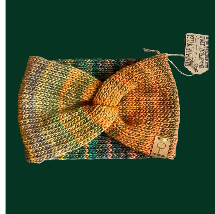 Luxury handmade wide knitted crossover headband. Made from super soft yarn in an array of autumnal colours.