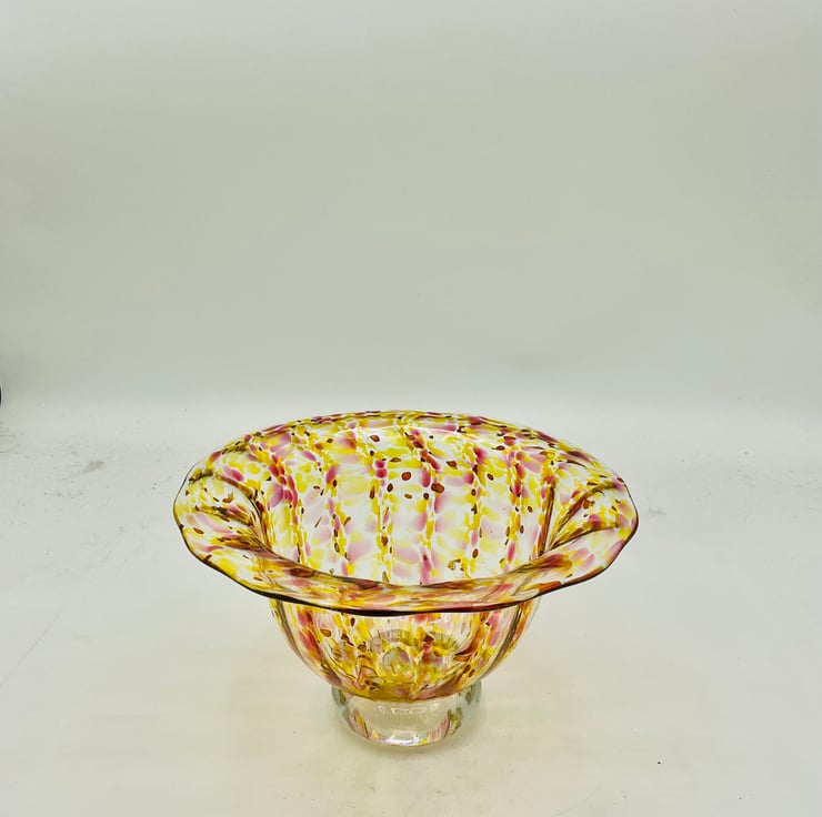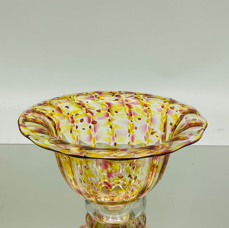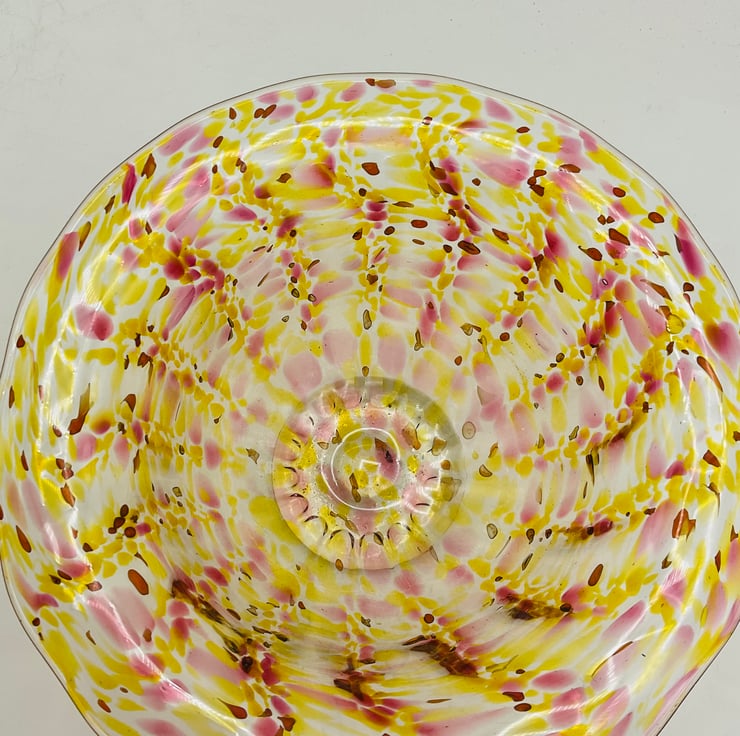 The clue is in the title…..the urchin bowl has ribs of colour just like a sea urchin. I do all sorts of colours combos but my favourites are always the mix of transparent and opaque colour . This is transparent blue and opaque green
