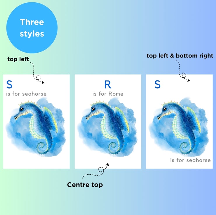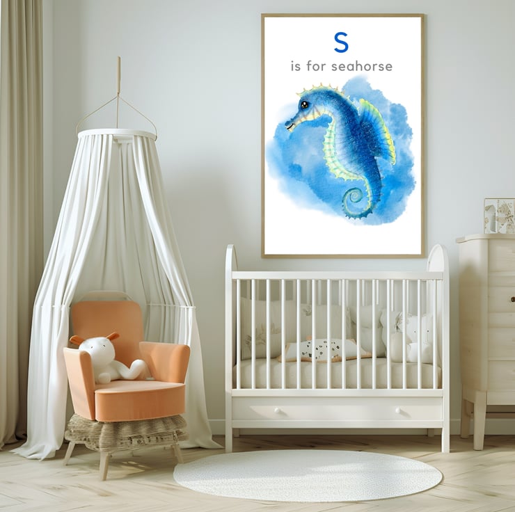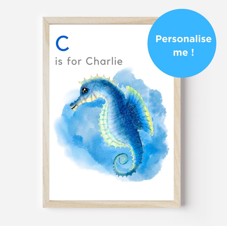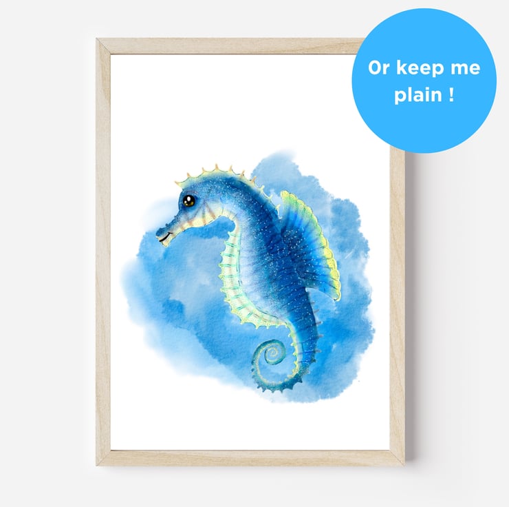 Blue is such a restful and soothing colour. This cute smiley seahorse will bring peace and tranquility to your little one's nursery, playroom or bedroom.