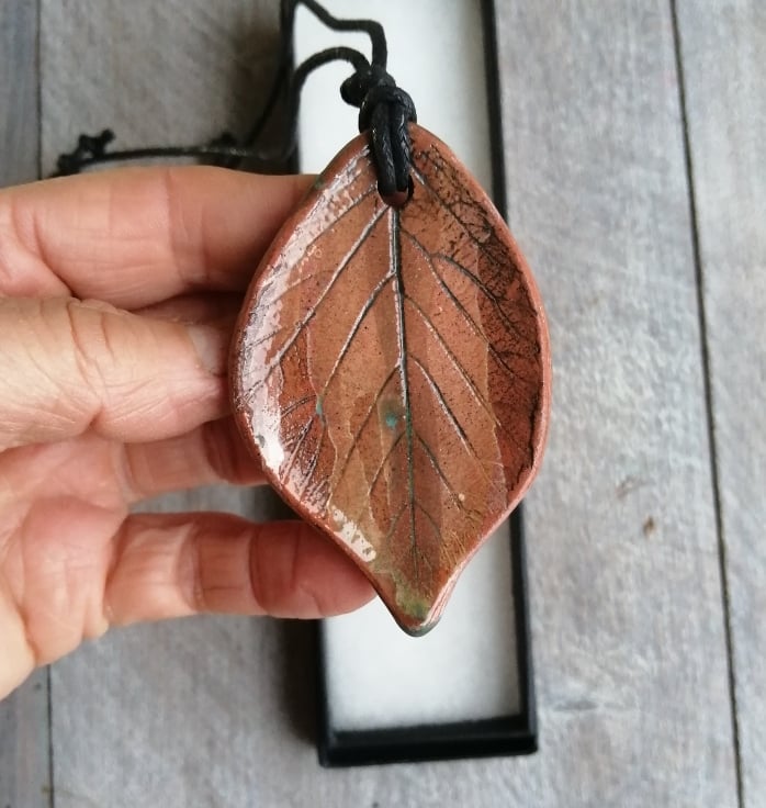 These leafy ceramic necklaces, start life from real leaves from the Common Lime Tree that grows in my local surroundings.