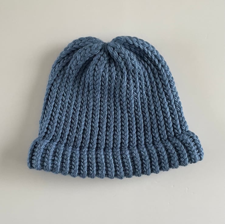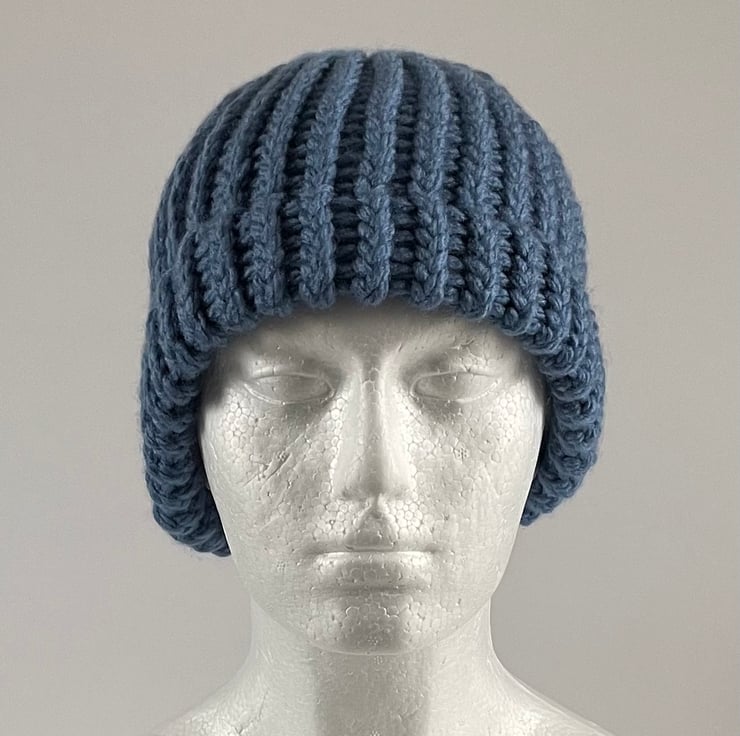 This Beanie is loom knitted with a fixed brim so makes it easy to slip on and off your head without the need to reposition every time.