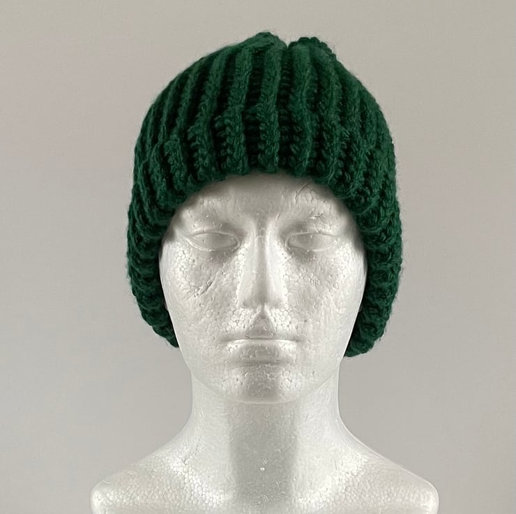 Bottle Green Coloured Chunky Beanie with Fixed Brim, perfectly imperfect