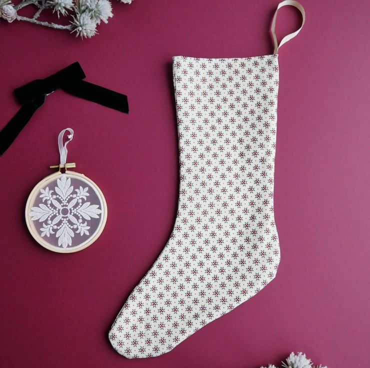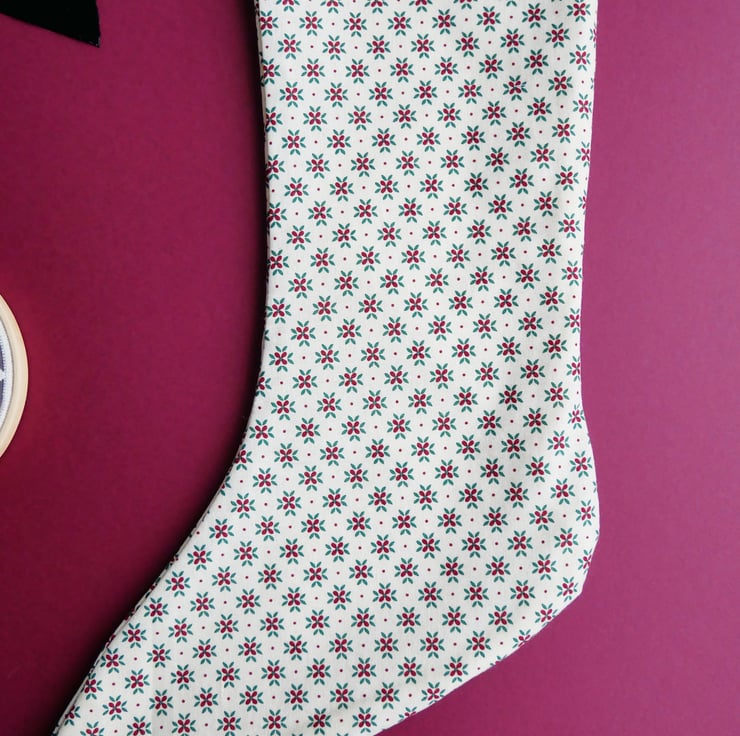 Medium sized Christmas stocking with ditsy poinsettia flower print.