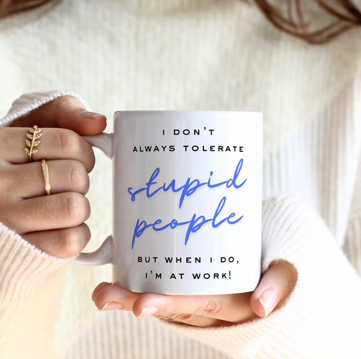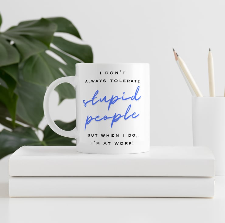 Tolerate Stupid People - Script Mug: Office Humour Gift, Funny For Work Mug