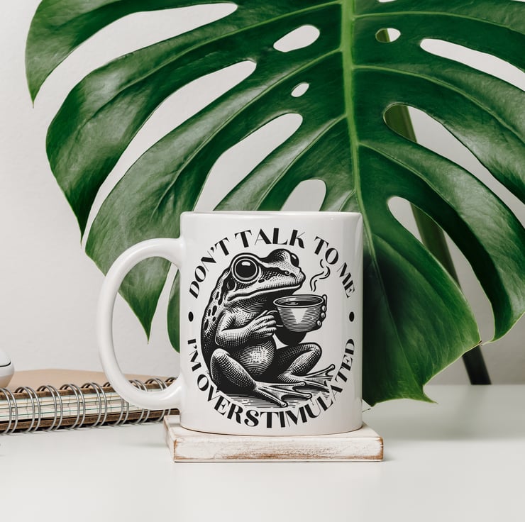 Start your day with a laugh and a touch of relatability with this quirky "Don't Talk to Me, I'm Overstimulated" mug featuring a cool frog sipping a hot beverage. Perfect for introverts, coffee lovers, or anyone who needs a little space before they've had their caffeine fix, this mug combines humour with charm.