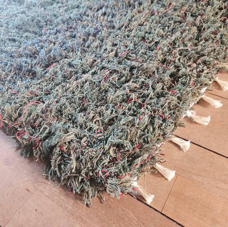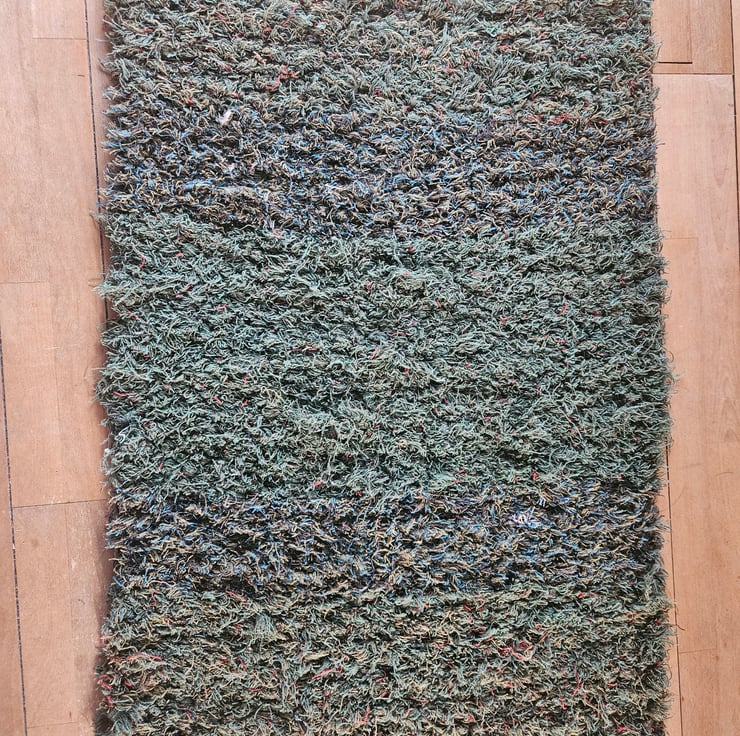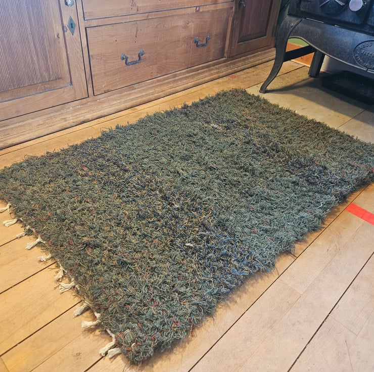 Green, super thick, wool selvedge rug. Made from Scottish tweed selvedge and organic cotton warp threads.