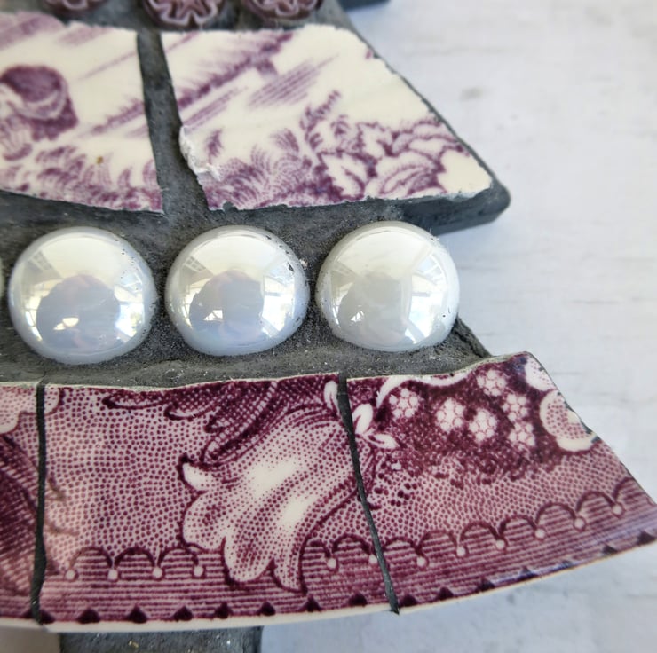 These decorations are suitable for indoors and care must be taken as they may have sharp edges due to the materials used. As the materials used include vintage ceramics, there may be signs of use and wear, further adding to the rustic appeal of the artwork.