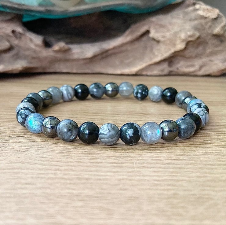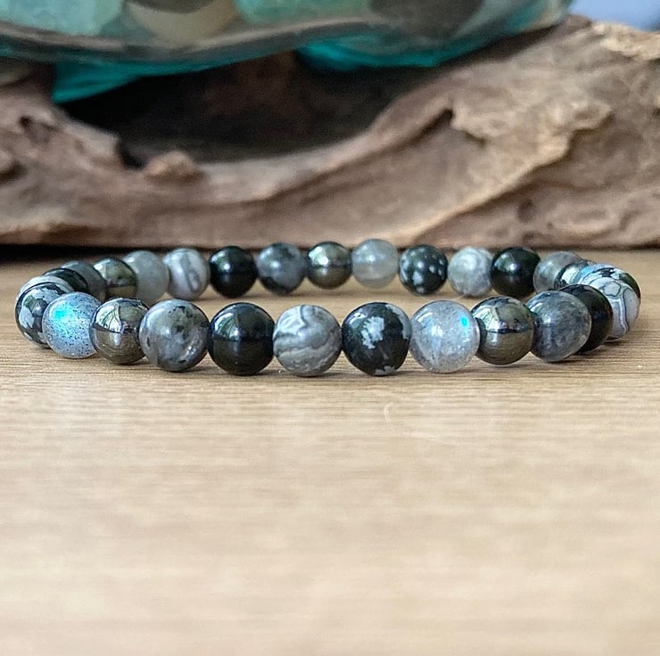 LABRADORITE creates a shielding force throughout the aura, strengthening natural energies from within. It helps to restore energy after an emotional drain.