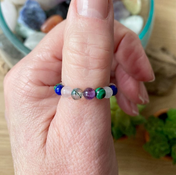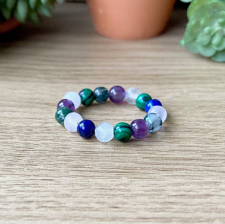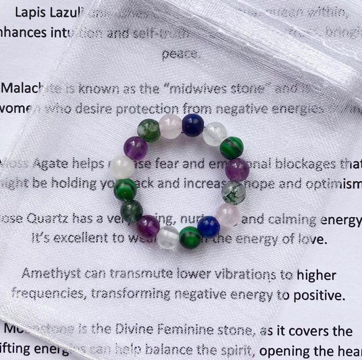 Your ring will be made with positive intentions, cleansed with sage and charged prior to packaging. It will be sent in an organza gift bag with a description of each stone and its properties.