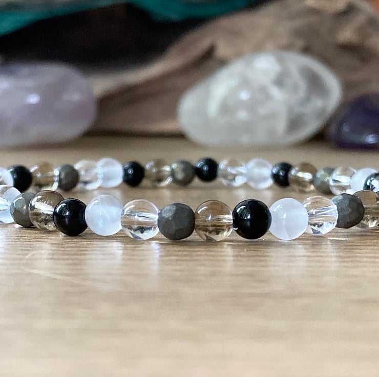 BLACK TOURMALINE absorbs negative energy and also has the ability to transform it into usable, positive energy and light. It is also known to calm the mind, relieve stress, promote balance, and assist in detoxification.