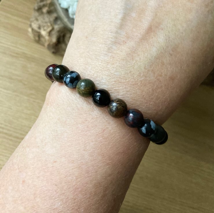 Connect with Earth Energy through the Earth Star Chakra Bracelet made with gemstones used to enhance stability, increase energy grounding, and give a sense of rootedness in daily life.