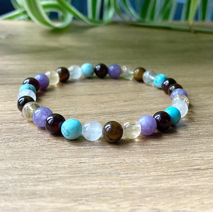 Enhance your well with our Mental Health Support Bracelet, meticulously crafted with gemstones to promote emotional balance, alleviate stress, and offer gentle support during challenging periods. Ideal for daily wear, this bracelet serves as a symbol of self-care, resilience and inner strength.