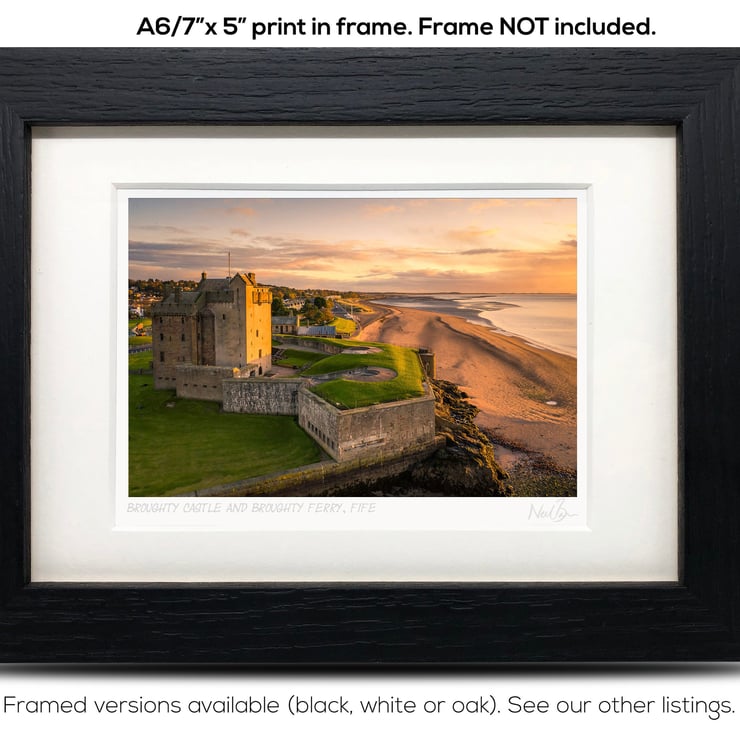 Supplied already mounted, wrapped & with signed labels & certificate, the image is printed on A6 size fine art paper (148x105mm). The actual image size is smaller (see listing images for sizes - image approx. 115x77mm) to allow for the signature & inscription. The 100% acid-free mount is cut to fit standard ready-made frames from high street stores. EXTERNAL mount size is 7"x5". This is the OUTSIDE size of the mount (and thus the size your frame should be).