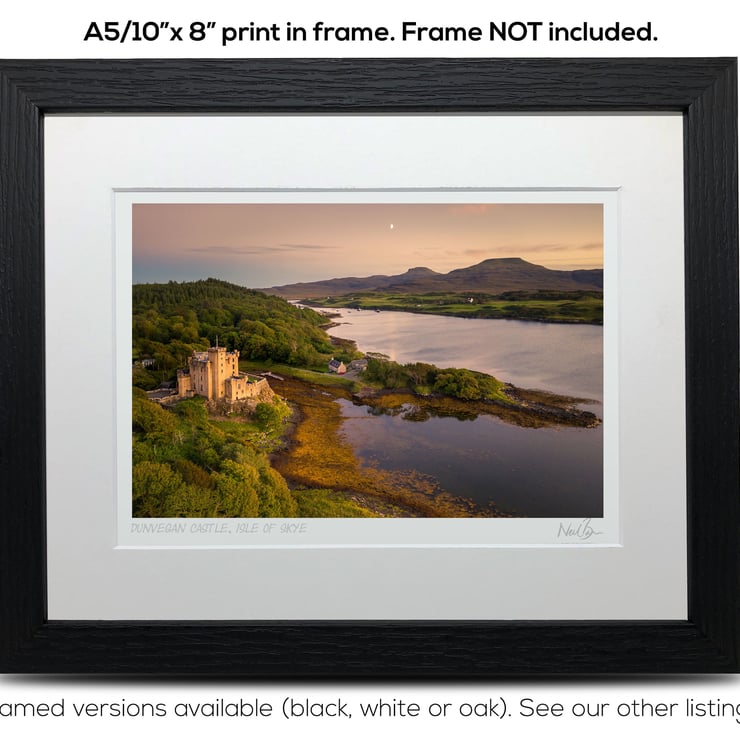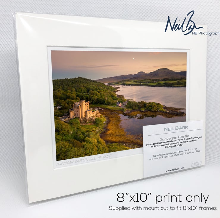 Supplied already mounted, wrapped & with signed labels & certificate, the image is printed on A5 size fine art paper (148x210mm). The actual image size is smaller (see listing images for sizes - image approx. 185x123mm) to allow for the signature & inscription. The 100% acid-free mount is cut to fit standard ready-made frames from high street stores. EXTERNAL mount size is 10"x8". This is the OUTSIDE size of the mount (and thus the size your frame should be).