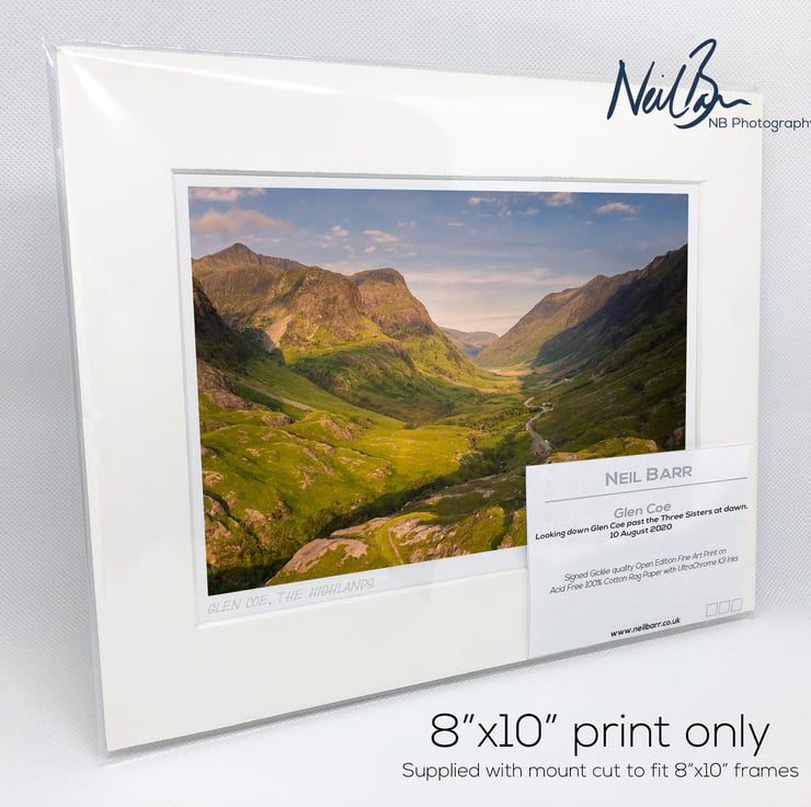 Image: "Glen Coe" - Looking down Glen Coe past the Three Sisters at dawn, 10 August 2020 - by Scotland photographer Neil Barr